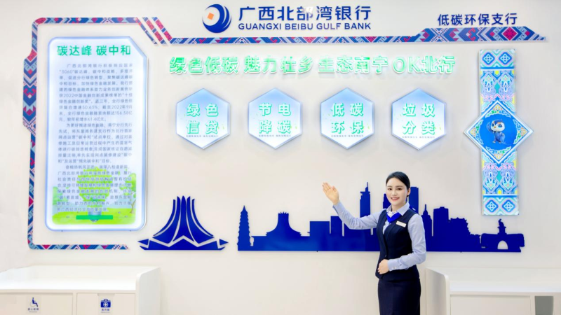 广西北部湾银行不断完善绿色金融发展机制,加大重点领域投向引导,在“四个加强”上发力,全力支持广西经济社会绿色低碳高质量发展。加强资金定价支持,对符合监管标准的绿色金融业务,予以内部转移定价优惠。加强信贷政策倾斜,在内部核算中调减一般绿色信贷经济资本占用系数,鼓励信贷资源向绿色金融倾斜。加强业务协同保障,对绿色信贷项目开通审批服务绿色通道,实现优先受理、优先审批,大幅提升业务办理时效。加强机构覆盖,在南宁、柳州、贺州、防城港、桂林设立绿色金融部,在河池环江支行、贺州分行营业部及桂林分行营业部设立绿色专营支行,在南宁成立全国首家配置零碳保险的“碳中和”网点,为守护绿水青山提供机构保障。
