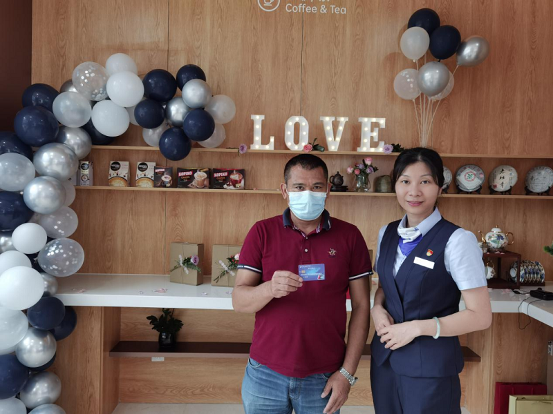 单位结算卡推出首日,成功办理单位结算卡的客户与客户经理留影