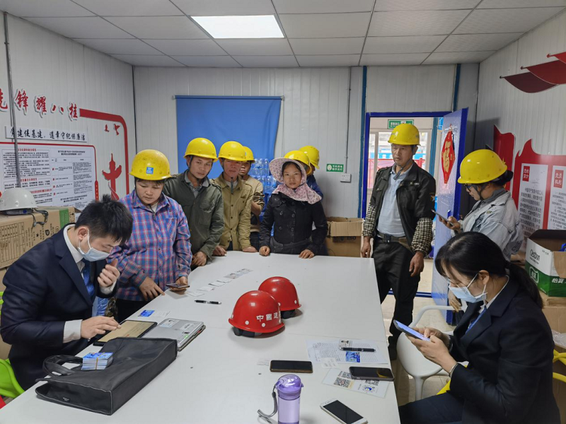 琅东支行党员到中建八局工地为农民工开办桂建通卡,送服务到工地,被工友们亲切地称为“工地银行”
