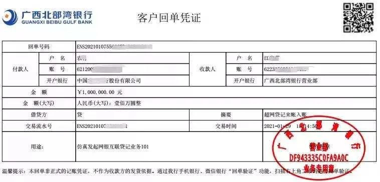 为解决客户回单打印不方便问题,北行推出全渠道电子回单服务,在广西区域性银行中率先实现可在线上获取加盖业务电子印章的业务回单和交易流水,所有单据均支持防伪验证,真正实现笔笔有回单,笔笔有效力,笔笔留痕迹,笔笔可验伪。