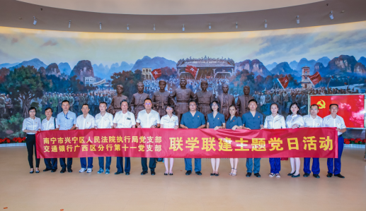 近日,为引导党员干部员工不忘初心、牢记使命、不懈奋斗,搭建与合作单位联学联建的桥梁,促进党建与业务工作深度融合,交通银行广西区分行第十一党支部联合南宁市兴宁区人民法院执行局党支部在广西革命纪念馆,开展主题为“缅怀革命先烈、传承爱国主义精神,深度融合党建,共同促进提高”的联学联建主题党日活动。