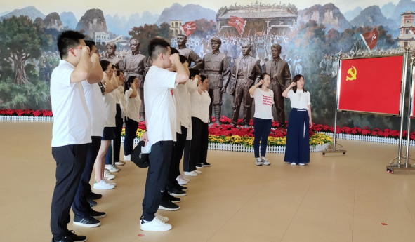 活动伊始,全体参加活动的党员同志怀着无比崇敬的心情聚集在公祭广场,向革命烈士默哀1分钟,悼念为广西这方热土奉献出自己生命的英雄,缅怀先烈的丰功伟绩,寄托对革命先辈无尽的哀思和由衷的敬仰。随后,在双方党支部书记的带领下,全体党员重温了入党誓词,回望初心使命,始终牢记身为共产党员应尽的责任与义务。紧接着,双方还互赠了党建书籍,希望通过分享书籍的方式,共同提高综合素质和履职能力,同时也借此机会相互敦促,在书籍中陶冶党性修养,建设学习型党组织。