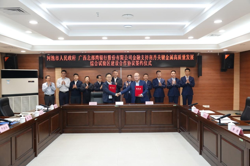 本次签约是深化政银合作、推动建成南丹关键金属高质量发展综合试验区的具体行动,更是金融赋能关键金属产业升级,助力河池经济社会腾飞的战略举措。根据协议内容,双方将进一步深化政银合作,强化金融对南丹关键金属高质量发展综合试验区的支撑作用,未来五年内广西北部湾银行计划投放各类信贷资产总额不少于350亿元,其中关键金属等重点领域信贷资产总额不少于200亿元,加快推进南丹关键金属高质量发展综合试验区建设,推动河池市有色金属特别是关键金属等重点产业高质量发展,引领广西有色金属产业向高端化、智能化、绿色化、规模化、园区化发展。