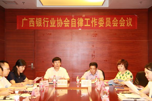 2017年6月15日, 广西银行业协会自律工作委员会第二届第一次全体工作会议在南宁召开。广西银行业协会自律工作委员会24家成员单位的代表参加了会议,会议由广西银行业协会黎滨海专职副会长主持。