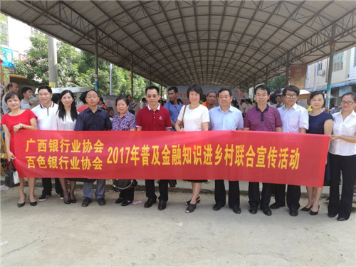 2017年7月26日,根据《2017年度广西银行业“普及金融知识万里行”宣传活动方案》以及广西银监局的相关工作要求,广西银行业协会与百色银行业协会在百色市田东县祥周镇布兵村联合开展2017年普及金融知识进乡村宣传活动。