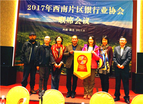 会议最后,参会代表以举手表决方式通过了由西藏自治区银行业协会设计的新会旗,并进行了西南片区银行业协会联席会议承办交接仪式,西藏自治区银行业协会常务专职副会长白小冰将会旗交至2018年西南片区银行业协会联席会议承办方四川省银行业协会秘书长杨蕾手中。