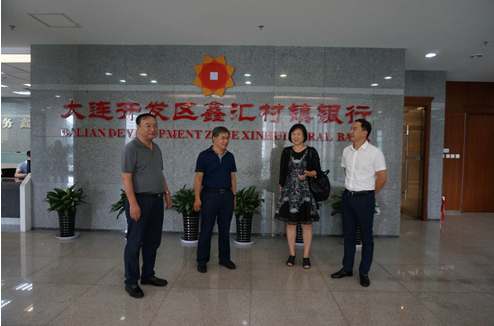 图为参会人员到大连开发区鑫汇村镇银行调研