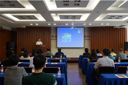 图为参会人员听取大连开发区鑫汇村镇银行情况介绍