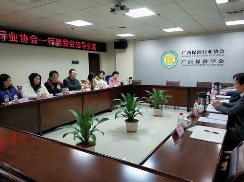 为进一步加强与广西保险行业协会的交流合作,2月20日下午,广西银行业协会韦向玲常务专职副会长、黎滨海专职副会长率协会各部门主任走访广西保险行业协会,与广西保险行业协会徐海副会长兼秘书长、蒋永辉副秘书长及相关部门负责人进行工作交流座谈。