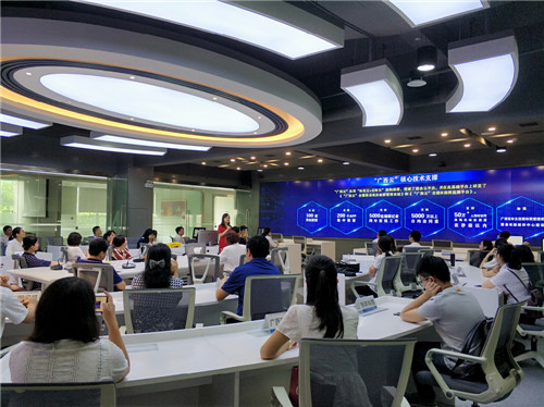 图为广西日报传媒集团“广西云”融媒体中心观摩学习