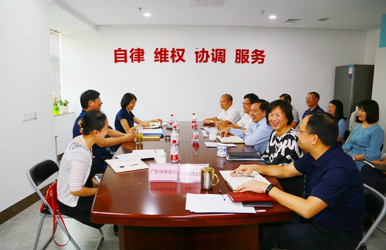 9月24日,广西银保监局党委书记、局长姜国富同志,党委委员、副局长罗瑛同志一行到广西银行业协会调研指导工作,广西银行业协会第十一届理事会会长、中国农业银行广西区分行党委书记、行长梁毅对协会今年以来开展工作的情况进行了汇报。