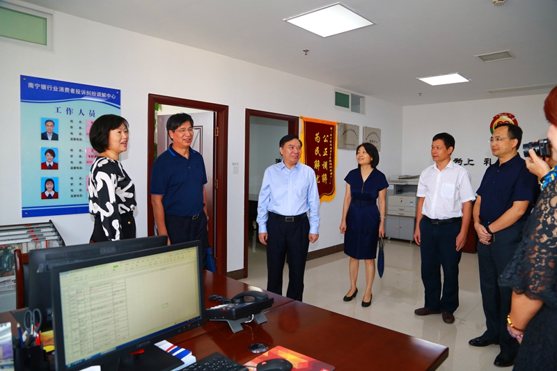 当天,姜国富同志一行还到秘书处各部门看望干部员工,到南宁银行业消费者投诉纠纷调解中心调研工作开展情况。
