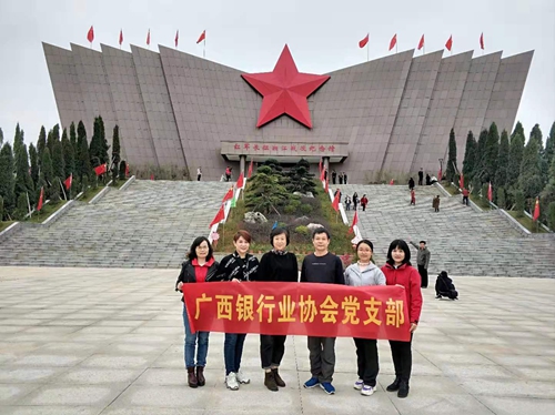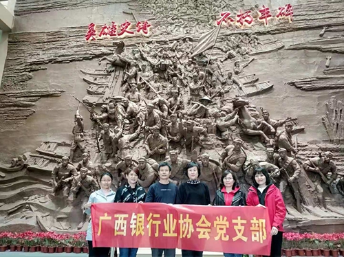 为铭记革命先烈丰功伟绩,弘扬和传承伟大长征精神,走好新时代的长征路,将“不忘初心、牢记使命”主题教育推向深入。2019年11月21日,在韦向玲书记带领下,广西银行业协会党支部六名党员前往桂林全州红军长征湘江战役纪念馆,开展主题党日活动。湘江战役是中央红军长征途中最悲壮的一战,关乎中央红军的生死存亡。党员们在讲解员的引导和解说下,参观了纪念馆中大量珍贵的图片和实物,了解到85年前,为确保中共中央和中央红军主力渡过湘江,数以万计的红军将士血染湘江,书写了红军长征伟大史诗中最壮烈的一页,树立了一座光照千秋的革命丰碑。同时被在湘江战役中,红军将士用胸怀革命理想高于天的崇高信仰,忠诚担当,顾全大局,严守纪律、紧密团结、敢于胜利、敢于突破、敢于牺牲的伟大长征精神所打动。在纪念馆的三楼,党员们面对鲜红的党旗,举起右手,庄严地重温了入党誓词。