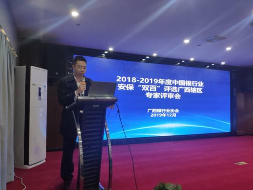 2019年12月3日,根据《2018-2019年度中国银行业安保“双百”评选活动广西辖区实施方案》,广西银行业协会在南宁组织召开2018-2019年度中国银行业安保“双百”评选广西辖区专家评审会。