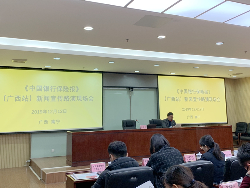 为加强行业舆论主阵地建设,12月12日上午,《中国银行保险报》在广西银保监局会议室召开新闻宣传路演现场会。广西银行业协会、广西保险行业协会分别组织辖区会员银行和会员保险公司办公室或分管新闻宣传工作部门负责人、会员保险公司以及协会负责宣传工作的部门负责人共计90余人参加会议。《中国银行保险报》执行总编辑李俊岭、通联部主任李东明,广西银保监局办公室副主任覃茜敏、广西保险行业协会副秘书长蒋永辉出席会议。会议由广西银行业协会专职副会长黎滨海主持。