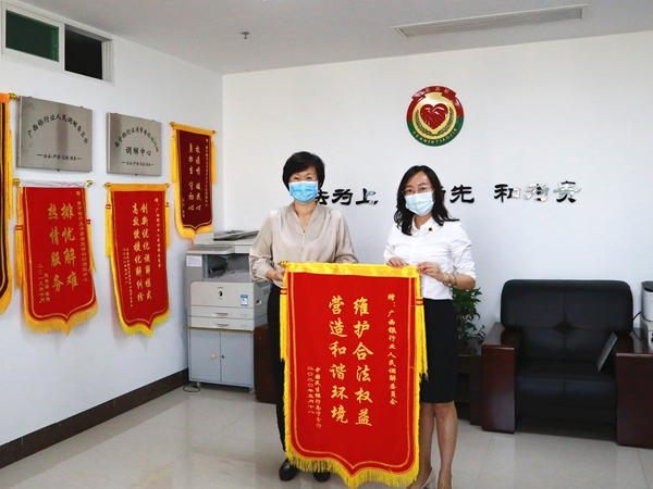 接到锦旗后,广西银行业协会常务专职副会长韦向玲表示,会员单位送来锦旗既是对调解中心工作的肯定,也是一种鼓励,同时也对调解中心的工作提出了更高的要求。今后,我们将再接再厉,紧紧围绕金融纠纷多元化解机制建设,银行业纠纷解决创新模式,银行业纠纷调解平台建设等方面,为消费者和银行机构提供高效便捷纠纷化解服务,推动调解中心各项工作再上新台阶。