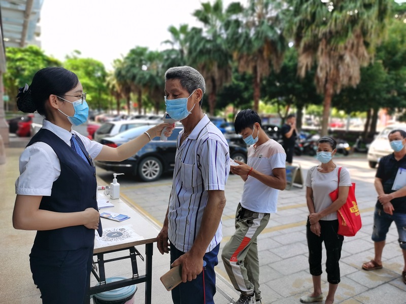 2020 年年初疫情严重期间,营业部一边做好各项防疫措施,一边做好弹性排班,既满足了客户的金融服务需求,又保障了金融消费者的人身安全,做到服务防疫两不误,人性化的服务得到了客户的一致认可。2 月 5 日,也是春节过后对外服务的第 5 天,负责厅堂接待的客户经理何勤建接到了一个求助电话。原来是有两位来自疫区武汉市的夫妇由于在北海体育宾馆隔离了半个多月,身上带的现金已经花光, 同时信用卡也到了还款日,焦急的老人多方求助无果后,想到了交通银行,希望能解其燃眉之急。营业部迅速响应,在厅堂腾出一个相对隔离的区域,同时通知所有同事做好防护措施,不留死角。11 点左右, 两位老人如约到达网点,做好客户信息登记后,何经理把事先准备好的消毒液给客户做消毒,然后询问清楚客户的需求后带领客户到指定区域办理业务,由于客户年纪比较大,使用自助机具不够熟悉,办理速度比较慢,何经理都耐心地一步步指导客户,最后顺利地把业务办完。两位老人对交行细致和热情的服务赞不绝口,其中一位老人说:“别人听说我们来自武汉,对我们是唯恐避之不及,只有你们交行愿意接待我们,感谢你们的真诚服务,你们是在用心为老百姓办事,我们感谢你们!”