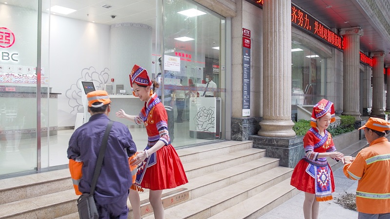 营业室将“夏日送清凉”、“冬日送温暖”、“午间送饼干”、“节日送祝福”等服务常态化,配备充足的便民服务设施,针对老龄特殊群体特点,提供爱心专窗、放大版填单模板、养生书籍等“乐龄服务”,打造温馨服务氛围。