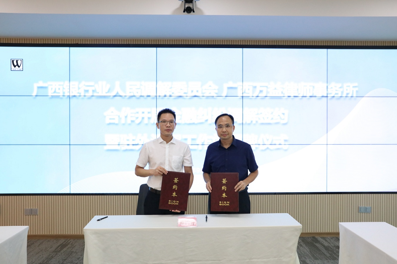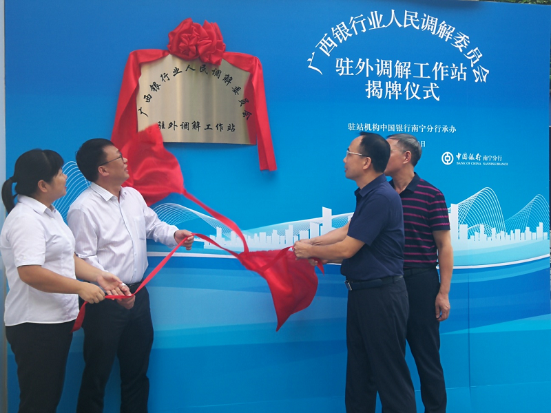 9月10日,广西银行业人民调解委员会(以下简称 “银调委”)驻外调解工作站分别在广西万益律师事务所、广西道森律师事务所、中国银行南宁分行正式挂牌成立,广西银行业协会吴庆平专职副会长、广西万益律师事务所、广西道森律师事务所、中国银行南宁分行相关负责人参加签约和揭牌仪式。