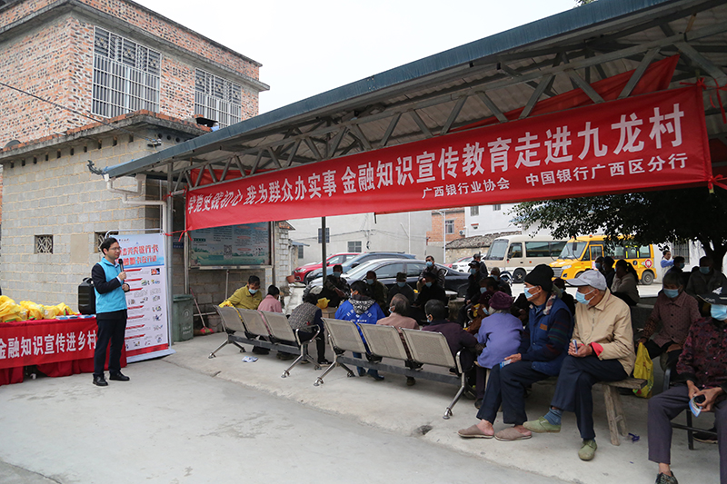 12月24日,为深入推进金融知识常态化宣教活动,广西银行业协会、中国银行广西区分行、中国银行南宁分行一起走进南宁市上林县九龙村,以“普及金融知识 助力乡村振兴”为主题,组织开展金融知识进乡村宣传和现场咨询活动,提高村民自我保护意识和风险防范能力,巩固拓展脱贫攻坚成果,助力乡村振兴战略实施。广西银行业协会专职副会长吴庆平带队参加活动。