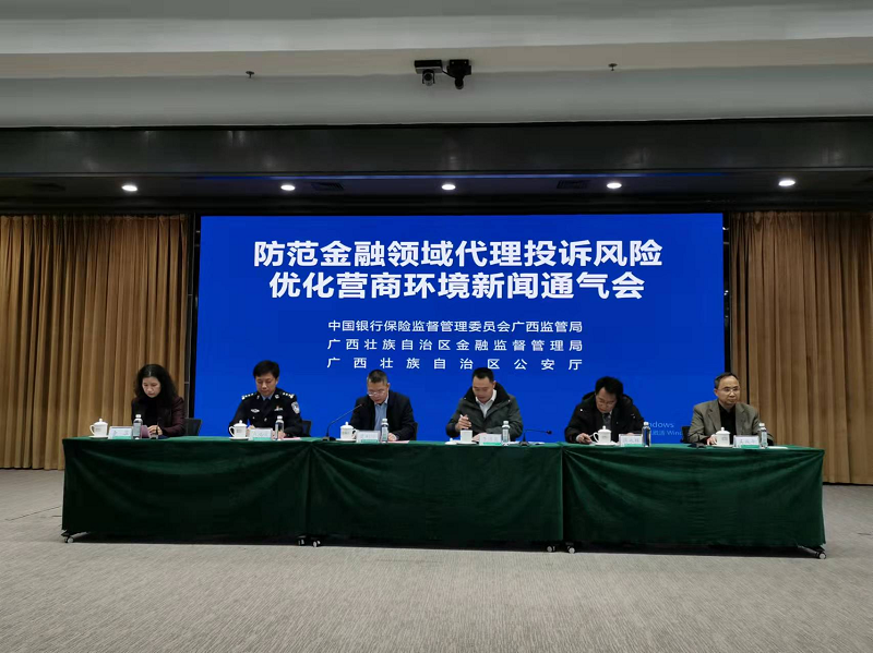为宣传非法代理投诉的危害性,扩大《关于防范金融领域代理投诉风险优化营商环境的通告》知晓度,2022年1月20日,广西银保监局、自治区金融监管局、自治区公安厅联合召开防范金融领域代理投诉风险优化营商环境新闻通气会。广西银保监局人身险处处长莫利宁、自治区金融监管局银保处负责人、自治区公安厅相关处室负责人出席会议,会议由广西银保监局消保处李蕊副处长主持,广西银行业协会吴庆平专职副会长应邀参加了会议。