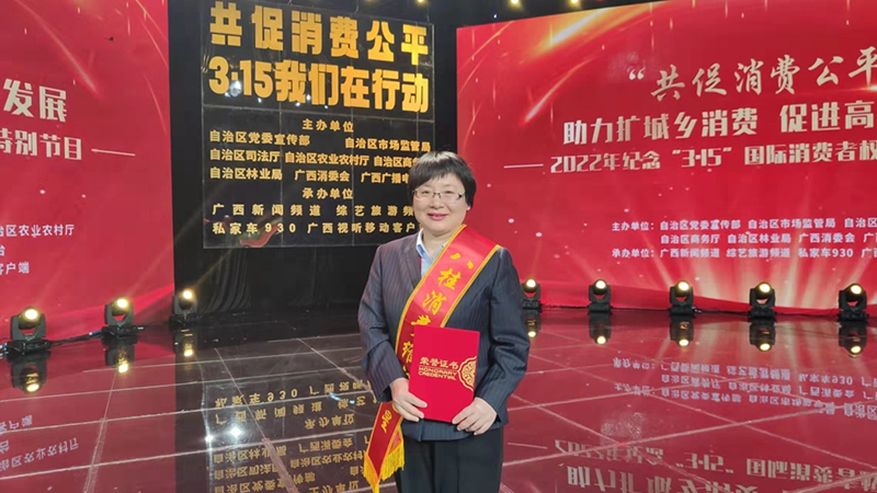在2022年“3·15” 国际消费者权益日到来之际,在广西壮族自治区党委宣传部、市场监管局、司法厅、广西消费者权益保护委员会、广西广播电视台等单位共同推出《“共促消费公平”助力扩城乡消费 促进高质量发展——2022年“3·15”国际消费者权益日特别节目》活动中,广西消费者权益保护委员会对消费维权工作做出积极贡献的40名先进人物进行表彰,弘扬正气以及依法维权精神,其中,广西银行业人民调解委员会专职调解员孙萍被授予“八桂消费维权之星”荣誉称号。