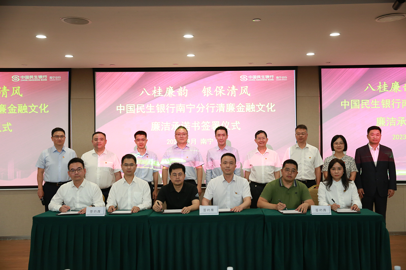 会上,与会人员集体观看警示教育片,分行纪委书记、副行长周桂平介绍分行清廉金融文化建设方案,供应商代表、信贷客户代表先后发言并与分行相关部室和经营机构负责人签署廉洁合作承诺书。随后,全体成员诵读清廉金融文化宣言——“传承红色基因,赓续红色血脉,做清廉金融文化的遵循者。阳光公正履职,营造清廉行风,做清廉金融文化的执行者。涵养清风正气,树立清廉家风,做清廉金融文化的守护者。奏响八桂廉韵,弘扬银保清风,做清廉金融文化的践行者。”将会议气氛推向了高潮。