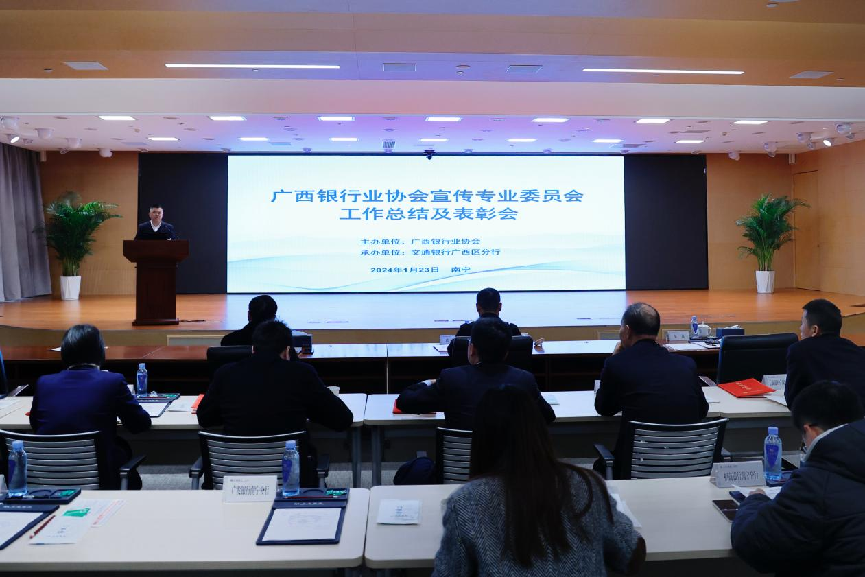 2024年1月23日,由广西银行业协会主办,交通银行广西区分行承办的2023年度广西银行业新闻宣传工作总结及表彰会在南宁召开。广西银行业协会副会长兼秘书长毛宁出席会议并讲话,交通银行广西区分行党委委员、副行长黄天国出席并致辞,广西银行业业协会宣传工作委员会成员单位约80人参加了会议。广西银行业协会宣传部主任韦良主持会议。