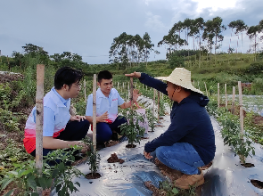 图:桂林银行在兴业县高峰镇的辣椒种植基地了解农户资金需求