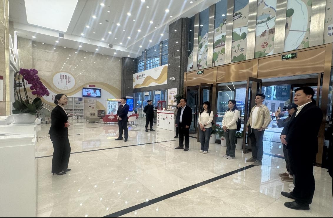 考察组还实地参观中信银行重庆渝中支行,了解该支行的网点功能板块、“五江”文化品牌建设等情况。近年来,中信银行重庆渝中支行坚持党建引领,成立鸣笛党建工作室,积极助力乡村振兴、投身社会公益、深化政银企合作,为小微企业、个体工商户纾难解困,关心关爱老年人等特殊群体,社会美誉度和综合竞争力持续提升,于2023年再次获评银行业营业网点文明规范服务百佳示范单位。在座谈会上,双方围绕银行业营业网点文明规范服务建设讲经验、谈感受、说认识,进一步深化桂渝银行业营业网点文明规范服务交流。