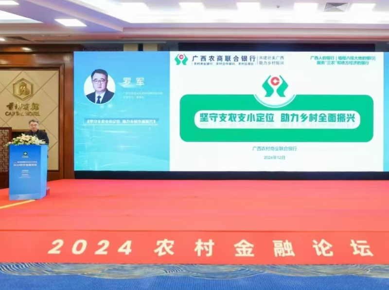 12月1日,由中国经济时报社主办的“经济前瞻论坛2024年会·2024农村金融论坛”在北京举行。本届论坛的主题为“深化农村金融改革,走好特色金融发展之路”,来自国家有关部门、高端智库的领导嘉宾、专家学者以及农村金融机构代表200余人参加会议。广西农商联合银行党委书记、董事长罗军受邀出席会议,并作题为“坚守支农支小定位 助力乡村全面振兴”的主题演讲。