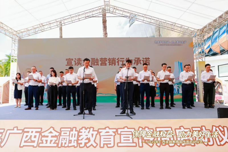 在活动的最后环节,广西金融机构代表共同宣读《金融营销行为承诺》,坚守合规底线,规范销售行为,强化行业自律,推动金融服务更加规范、透明。